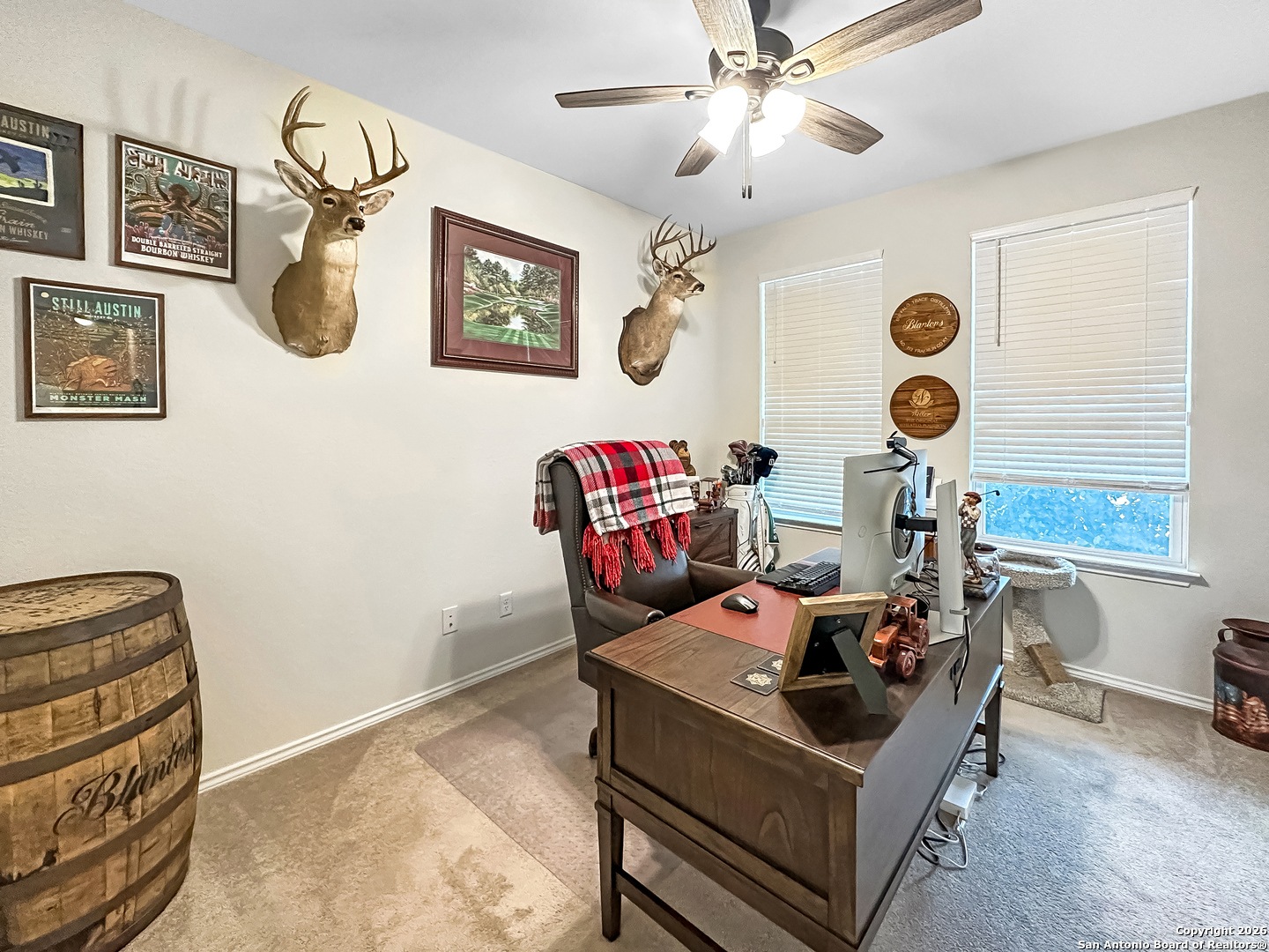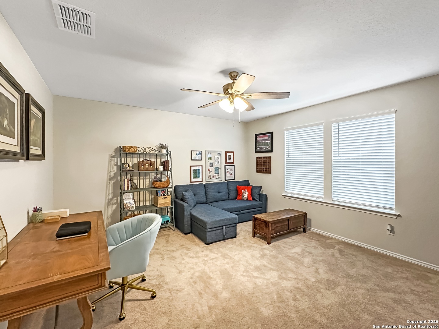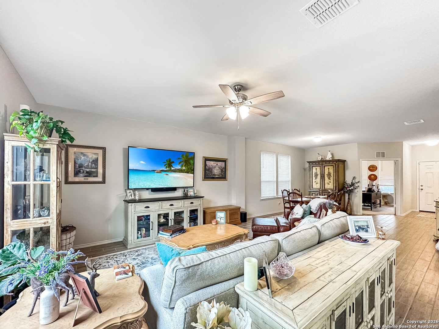Priced reduced and ready to sell! Welcome to 11275 Blue Feather, a pristine and like-new residence that seamlessly blends functionality and space! Backing to a dedicated green belt and finished in 2023, this immaculate home spans 2,601 square feet of thoughtfully designed living space, is located in desirable Davis Ranch and does not have city taxes! With 4 bedrooms and 3 full bathrooms, this home is a perfect retreat for both comfort and style. Upon entering, you're immediately drawn to the wood-like tile flooring that graces the first-floor living areas, combining the warmth of wood with the durability of tile. One of the best features of the home is the expansive kitchen, featuring a large island, sleek granite countertops, stainless appliances and ample storage. This space seamlessly transitions into the bright breakfast area and family room, creating an inviting open-concept layout that's ideal for gatherings. Another great feature is the main floor private office, offering a peaceful room for the work-from-home buyer. Additionally, the main floor hosts a guest bedroom and full bathroom with quartz counters, ensuring privacy and convenience for visitors or an in-law. Ascend to the second level to find the game room, a versatile space that promises endless entertainment possibilities. The primary suite is a highlight, boasting a spacious design, a luxurious bathroom with a double vanity, quartz counters, a walk-in shower with a glass door, and a large walk-in closet. The two additional bedrooms share a spacious full bathroom equipped with a double quartz vanity and shower/bath combo. Outside, the large fenced backyard offers a private oasis, thanks to the open space behind the property ensuring no rear neighbors. The covered patio is perfect for enjoying the outdoors in comfort. The finished and painted garage is impeccable and the included water softener is also a great addition. Situated close to schools, shopping, and community amenities like the HOA park and pool, 11275 Blue Feather offers both an ideal location and a like-new condition that's sure to impress. Discover a home where every detail contributes to a lifestyle of comfort and convenience.