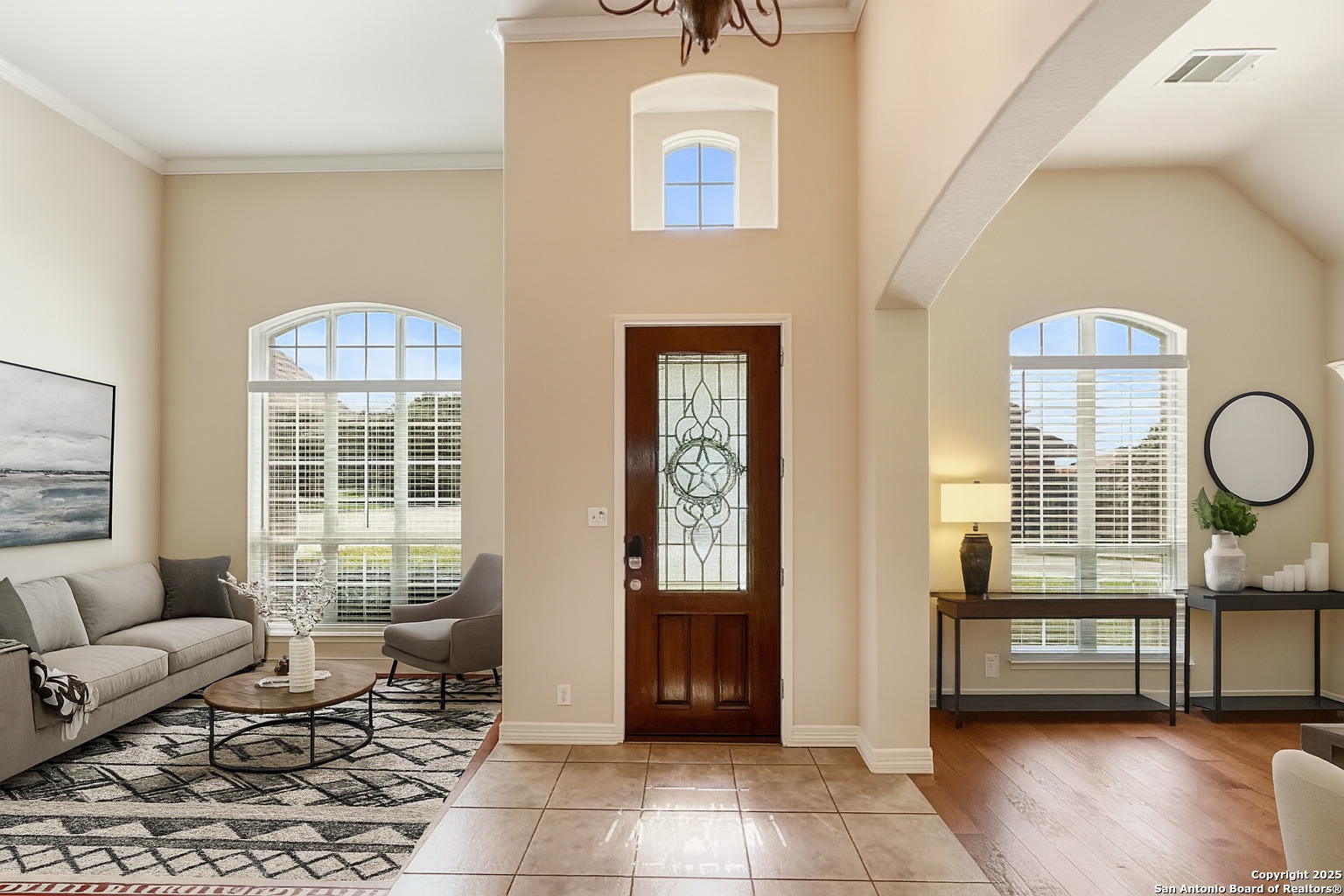 Welcome to 43 Gazelle Field in the gated enclave of Mesa Grande located in Stone Oak! This Highland-built home features nearly 3,100 SF, 4 bedrooms, 2.5 bathrooms, a spacious family room, a separate dining room, living room, a large kitchen that opens perfectly to the family room, a main floor primary bedroom w/ a double vanity, walk-in shower, soaking tub and large walk-in shower on a large .35 acre lot! The kitchen features granite countertops, a built-in stainless steel oven and microwave, a gas cooktop and a great breakfast nook that overlooks the views from the backyard. The second level offers three generous bedrooms, a full bathroom, as well as a private game room ideal for movies, crafting or a large office. The large lot offers ample space on both sides, as well as a huge backyard with more than enough room for a pool, sports court, etc. The lot is also slightly elevated, which offers long range views from the back of the home. The home also offers a newer heavy composition roof, a newer water softener, water heater and wood floors! The 3 car tandem garage is also a great feature, while the exterior is 4 sides masonry with an attractive combination of brick, stone and stucco. Mesa Grande is a great community within Stone Oak and features a large swimming pool, park and playground and is located within just a few minutes to excellent schools, shopping, dining and medical facilities. Priced well below the assessed value, come take a look at 43 Gazelle Field and put it on your short list!