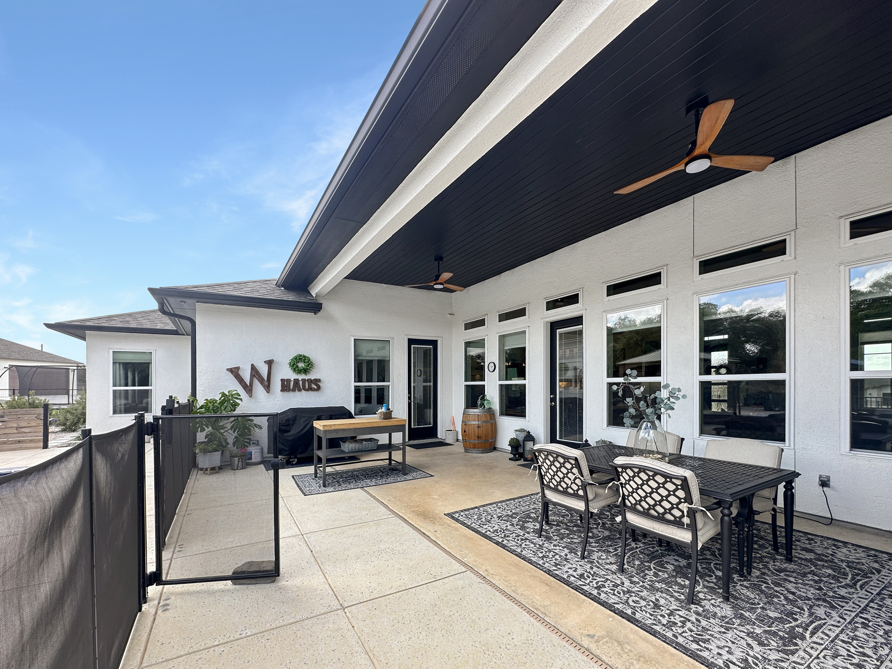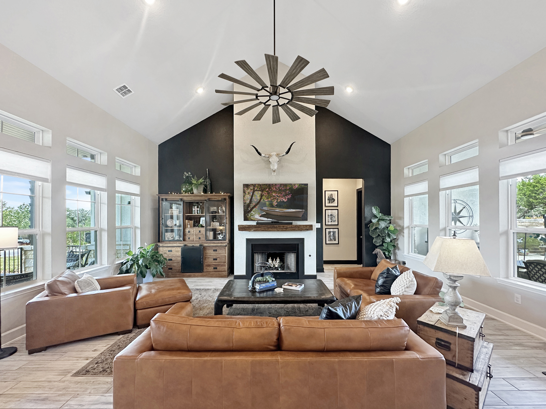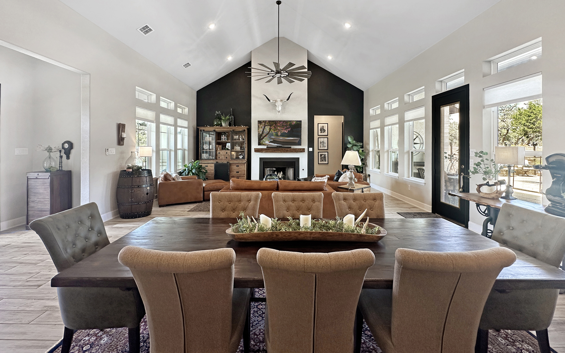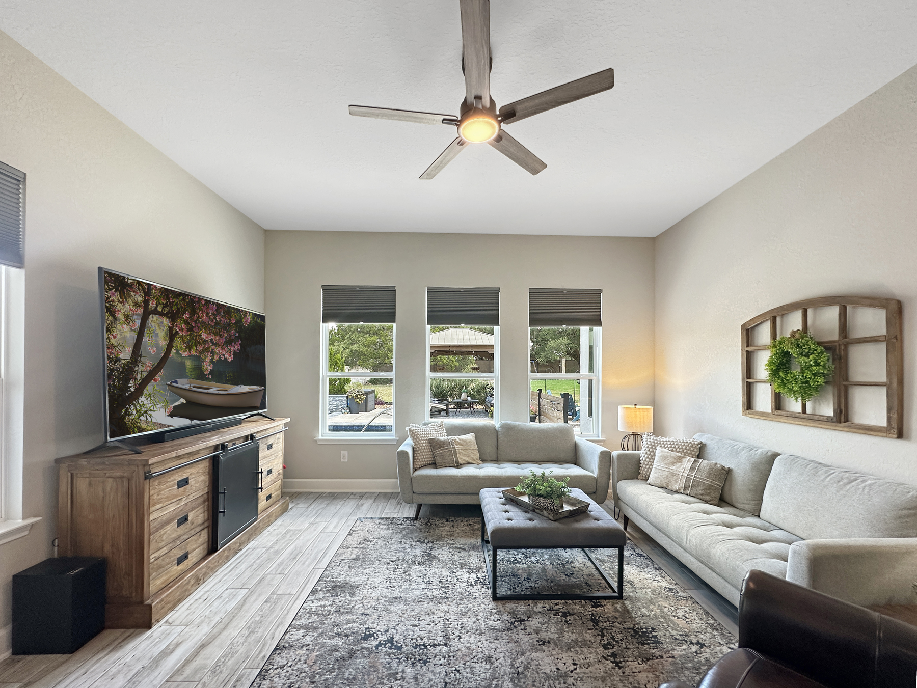 Ever dreamed of owning a modern farmhouse with a gorgeous pool on an acre of land within 3 minutes of historic, cool downtown Boerne? Well, welcome to 102 Anacacho Court located in the ever-so popular gated acreage community of Bent Tree! This stunning home offers approximately 3,306 SF, 3 bedrooms, 2.5 bathrooms, a large game room, a separate flex room that could be used as an office, lounge or perhaps a 4th bedroom, an incredibly open floor plan with a soaring vaulted ceiling in the great room (family, dining and kitchen all open to each other), 8' interior doors, lots of windows, including several transom windows, and so much more! The kitchen boasts Kent Moore soft-close cabinets and drawers, an 11 foot island with black granite counters and sink, stainless appliances, a built-in oven and microwave, a gas cooktop with stylish tile backsplash (and pot filler), and ample cabinetry, while seamlessly adjoining the dining and great room. Off the kitchen features a generous game room perfect for movie nights (with a custom sliding barn door), while an additional flex room can be used as an office, a lounge or even a 4th bedroom. Behind the kitchen will further impress you with a spacious butler's area that features even more cabinets shelving and room for a refrigerator, while the large walk-in pantry with abundant shelving is nearby. The primary bedroom is nothing short of a luxury spa experience! The bedroom overlooks the backyard and pool while the bathroom will blow your mind with the separate vanities with black leather granite, a soaking tub, a large walk-in tile shower with glass door and a walk-in closet the size of an apartment studio! With a split bedroom design, the primary bedroom has plenty of privacy from the guest bedrooms, which share a beautiful jack & jill bathroom, equipped with separate quartz vanities and a stylish walk-in tile shower with a glass door. The three car side-loaded garage is also a nice feature along with the epoxy flooring and water softener. The backyard is just hard to beat with the sleek pool built by Infinity Pools, the large gazebo that features a bar top table, outdoor TV and nearby fire pit. There is plenty of room to run, throw a ball, build a garden, a sports court, casita guesthouse or additional structure to house your RV or boat. Located on a corner lot and a small cul-de-sac, the property only has one true neighbor, allowing for privacy and space. If you are in the market for a beautiful modern farmhouse with an attractive pool, an acre lot, no city taxes, a reasonable HOA, a gated community and within just a few minutes to Boerne schools, shopping and dining, put 102 Anacacho Court on your short list!